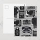 This image features a retro technology pattern in black and white, ideal for a vintage aesthetic or nostalgic design.