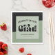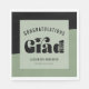 This fun graduation party napkin features the word "grad" in a bold retro text. The background is muted green and black and custom text allows you to personalised with the name of the graduate, school and graduating year.