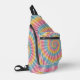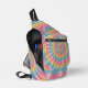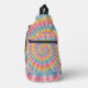 A bright and playful sling backpack featuring a bold tie‑dye spiral that brings instant retro charm to any outfit. The vivid mix of colors creates a standout look, while the compact shape, adjustable strap, and convenient zipper pocket make it practical for daily errands, festivals, school, or casual adventures. It’s a fun way to carry your essentials with personality and style.