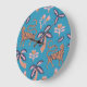 Vintage retro colour tiger, palm tree, flower seamless repeat pattern with blue background
