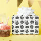 Tiki black and white pattern with flowers and fish motif on funky gift wrap.