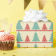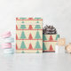 Fun and festive retro mid-century Christmas wrap features rows of turquoise and red holiday tree silhouettes on a vintage beige background