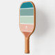 Retro Trendy Stripe Personalised Pickleball Paddle with editable colours and personalisation font. Shown in teal blue, mint green, coral pink, and terracotta with completely editable stripe colours to match your favourite colour vibes.