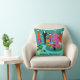 This Retro Family Trimming the Christmas Tree Throw Pillow contains every holiday tradition but the fruitcake. A 1960's cartoon family is at home in their mid century modern living room. There is a turquoise and teal brick wall and a red, cone fireplace with a roaring fire. Dad is wearing a black suit and red tie. He is hanging green Christmas stockings on the mod chimney with care. Next to dad, Junior is perched precariously on an orange chair. Whoa! Easy there, Junior! He is reaching out to put an ornament on a kitchy, pink, Christmas tree that is already decked out with teal ornaments and a yellow star. On the opposite side of the tree, Mum is holding a festively wrapped present. Hey, no shaking allowed! Mum is wearing a bright red wiggle dress with white trim. She is also wearing a Santa hat. Beneath the tree, there is a sleek black cat wearing a red bow. On the floor, there is a green and black record player surrounded by colourful vinyl albums. You just know that the family is singing along with their favourite Christmas carols while they are decking the halls. The bottom of the design features two, yellow starbursts and the words, "Happy Holidays." The opposite side of the pillow has a turquoise and teal brick pattern.