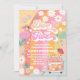 Celebrate your childs special day with this vibrant retro tropical birthday invitation! Featuring playful summer icons like flamingo floats, pineapples, daisies, and peace signs, this colourful design sets the tone for a fun-filled party. Perfect for poolside celebrations or tropical-themed birthdays, it combines nostalgic retro vibes with cheerful modern flair. Customise with your event details to create a unique keepsake guests will love.
