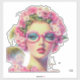 This dreamy retro-inspired illustration features a glamourous woman in oversized pink sunglasses and a blooming floral swim cap, set against a serene tropical backdrop of sailboats and blue skies. Perfect for adding vintage summer vibes and bold feminine energy to your Redbubble products like wall art, stickers, or apparel. A vibrant celebration of coastal fashion and floral fantasy.