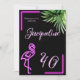 Retro tropical neon pink flamingo 40th birthday invitation