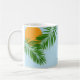Retro Tropical Sun Palm Leaves Blue Minimal Name Coffee Mug