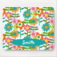 Turquoise and orange flowers done in a late 60's retro style with your name.