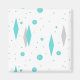 This Retro Turquoise Diamonds and Starbursts Square Magnet pattern is a new take on a vintage style. It features kitschy, grey starbursts on turquoise polka dots, surrounding geometric, turquoise and grey diamond shapes. Customise the background colour on this mid century modern product if you're feeling daring, or leave it white if subdued is more your style. You're sure to enjoy our homage to the 1950s. Buy this today and be the coolest cat on your block.