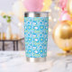 This fun retro 60-70s turquoise heart tumbler will bring a smile every time it is used!