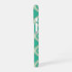 This phone case is distinguished by its vivid and retro-inspired diamond lattice pattern in varying shades of turquoise and mint green. The design features dynamic streaks of ivory light that cross the entire pattern, creating depth and an electrifying, neon-like glow. The composition is further enhanced by a clean, light-grey horizontal stripe centred within each diamond, which grounds the retro feel and injects a sophisticated modern art sensibility.