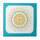 This attractive ceramic tile has a pretty retro sunburst image in bright turquoise and orange, giving it a colourful southwest appearance. The image is on white, with a turquoise frame.