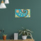 Retro turquoise paisley with flowers poster