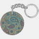 Retro Turquoise Rainbow Paisley motif Key Ring