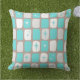 This Retro Turquoise and White Starbursts Outdoor Throw Pillow is so adorably space age you won’t be able to contain your enthusiasm. And, why would you want to? This 1960’s mid century modern inspired design features a dark heather grey background and rows of perfectly imperfect rectangles in turquoise, white, and dove grey. Kitschy white and turquoise starbursts are placed in randomly selected rectangles. This mod pattern will make you feel like you jumped in a time machine and set the dial for irresistibly vintage!