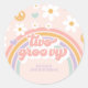 Retro Two Groovy Girl Rainbow 2nd Birthday Classic Round Sticker