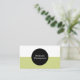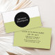 Retro styling highlights this custom business card design in two-tone colour block. Colours include lime green and white with contrasting black circular frame surrounding your text. This versatile design is a wonderful choice for many professions. Personalise the text template on both sides of this card with your details.