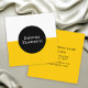 Retro styling highlights this custom square business card design in two-tone colour block. Colours include vibrant mustard yellow and white with contrasting black circular frame surrounding your text. This versatile design is a wonderful choice for many professions. Personalise the text template on both sides of this card with your details.