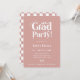Retro Type Graduation Party Invitation. Features, retro typography in white with dusty rose pink background and matching chequered pattern backing.