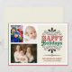Fun and festive non-religious holidaygreetings with 3-up photo frames on plain ivory ecru background with elegant retro letterpress style text in the shape of a decorative ornament. Add your favourite holiday family photos and customise the text. Contemporary way to send happy winter holiday greetings to all your friends and loved ones with a classy vintage flair. Matching postage, holiday party invitations, and greeting cards available upon request. PCF12