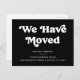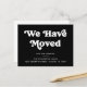 This simple, whimsical moving announcement features white retro decorative text that says "we have moved," on a black background. A stylish way to share your new home address with family and friends!