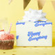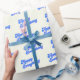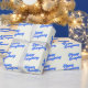 Celebrate all the winter holidays with this groovy wrapping paper featuring the expression - happy everything - with retro style typography in a blue and white colour palette.