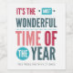 Trendy bold colourful retro style typography holiday quote, "THE MOST WONDERFUL TIME OF THE YEAR," wine label. Design has one template text line for name and year.