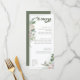 Modern and elegant floral boho wedding menu card. The design features watercolor boho floral elements on the front and sage green background on the backside. Customise it easily with your wedding details.