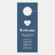Customisable wedding door hanger featuring retro bold typography with a heart accent. This navy blue wedding door hanger is a perfect way to welcome guests. Tell your guests about the wedding activities by listing the details at the back of the door hanger. Other colours are available.