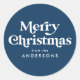 Retro Typography Navy Blue Merry Christmas Classic Round Sticker