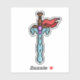 Retro ultimate sword sticker featuring a legendary pixel weapon, powerful 8-bit fantasy aesthetic, vintage RPG inspired design, minimalist retro gaming art for laptops, notebooks, and gamer gear.
