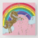 Retro Unicorn Rainbow & Gold Stars Square Wall Clock