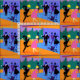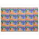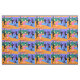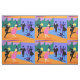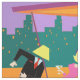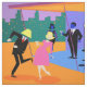 This Retro Urban Rooftop Party Fabric is intoxicating in its detail. The cartoon design features the type of wildly sophisticated cocktail party that is normally only seen in movies from the 1960s. There is a lot for the partygoers to take in. From the comfort of a penthouse apartment, guests are enjoying the view and the ambiance. The lighting sets the mood and we are able to see the darkened silhouettes of an attractive couple dancing the cha-cha. On the floor, there is a purple, portable, record player at the feet of the dancing couple. Several albums have been scattered nearby. Even with the dimmed lighting that makes practically everything in the room appear in shades of purple, blue and black, we can tell that everyone is dressed to the nines. Behind the dancing, indoor couple, there is a gentleman in a black suit holding a martini glass. He is talking to a dark haired beauty who is standing near one of the floor to ceiling glass walls. From a lampstand, a single bulb is casting a romantic glow on the scene. The only thing missing is the lampshade. Hmm... Where is the shade? It's on the head of a tipsy man who has taken the party outside to the orange rooftop. He's clearly got some fine dance moves and he isn't afraid to show them to the world! His companion is a shapely, blonde woman in a bright pink dress. Her back is arched as she throws back her martini in an uninhibited fashion. Beyond the party, there is a breathtaking teal skyline, complete with skyscrapers and a purple sky. If this is how the other half lives, sign me up!