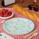 Retro Valentine's Day Candy Hearts on Teal Paper Plate