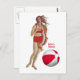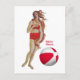 Botticelli's Venus in more daring two piece red polka dot retro swimsuit with matching beach ball
