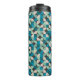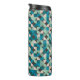 This mid-century modern pattern features turquoise and green geometric shapes.