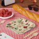 Vintage retro Christmas ornaments on this holiday party paper plates. Available in 7 and 9 inch, both square and circle.