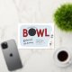 Cute and creative bowling alley birthday for kids or adults invitations feature "let the good times bowl" across the top in retro lettering with a bowling ball in place of the letter "O" and gold foil accents. Personalize with your bowling theme birthday party details beneath. The date and time appear on a vintage style bowling pin at the right.