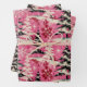 This vintage Christmas wrapping paper features a charming and unique design with a soft pink background that exudes a warm and nostalgic feel. The pink hue evokes a sense of whimsy and femininity, setting it apart from the traditional reds and greens commonly associated with Christmas.