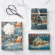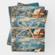 Retro Vintage Christmas: Snowy Village Scenes Wrapping Paper Sheet