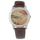 The watch looks really great! Very sharp and well done. The leather band is really nice, though for a man's watch I think it should be longer. Unfortunately, it isn't big enough for my husband's wrist but I will get a replacement because he is very excited to wear it!