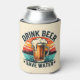 Beat the heat and rep the retro vibes with this fun and vintage can cooler! This eye-catching cooler features a classic pint of beer standing tall against a breathtaking sunset over the sea. The design is punctuated by the hilarious text "drink beer, save water" - a guaranteed conversation starter at any gathering. Made with high-quality materials to keep your drinks icy cold, this can cooler is the perfect combination of fun, function, and vintage flair.