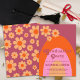Celebrate her graduation with this cool retro 60s 70s groovy vintage bold colours graduation party invitation. With with a burgundy orange tangerine pink and mustard yellow arch and simple daisy pattern this graduate party vibe is perfect for an outdoor chic boho rustic hippy themed celebration. Easy to use templates with groovy typography sets the seen for a cool groovy hippie grad party. Original artwork by artist Catherine Sweetman