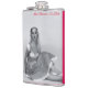 Hip flask, featuring original pinup artwork ©"Miss Cherrie Au Lait as Heidi". Pink text added and pink on reverse.