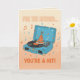 Celebrate their special day with a spin! This retro-themed birthday card features a classic blue suitcase-style turntable with a festive party hat riding the vinyl record. Surrounded by colorful confetti and music notes on a warm, vintage-textured background, the playful pun "For the record... you're a hit!" makes it the perfect greeting for any music enthusiast or vinyl collector.