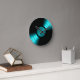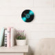 Retro Vinyl Record Album in Teal Round Clock