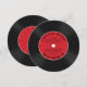 Vintage vinyl record birthday party invitation featuring a retro red starburst stripe pattern set on a cute round circle die cut birthday invitation. Perfect for any adult age birthday, 30th birthday party, 40th birthday party, 50th birthday party, 60th birthday party.
