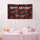 Dark red burgundy, retro vinyl record pattern happy birthday party banner. Personalise it by adding your name and dates. Great for a vintage 1940s bday party look and feel.
