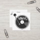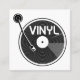 A black and white, vector illustration of a vinyl LP, record on a turntable or record player. The record has vinyl written on it.